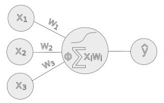 $$ \phi(x) = \frac{1}{1+e^{-x}} \rightarrow \phi(x) = \frac{1}{1+e^{-\sum_{i=1}^{3}x_i w_i)}} $$
